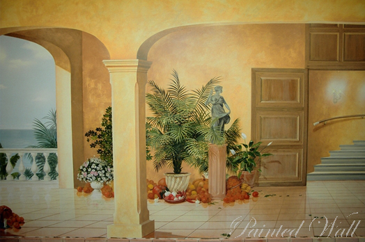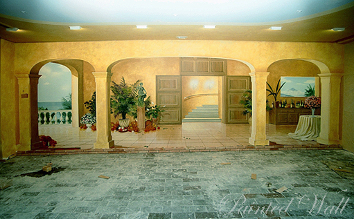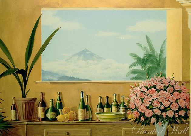 Para la remodelación del restaurante en el Gran-Hotel Atalaya en Tenerifa nos pidierón ampliar el espacio opticamente con la ayuda de murales y hacer posible la vista sobre el ‘Teide’. Gracias a la perpectiva central y una construcción exacta de la arquitectura llendó al fondo nos fué posible crear una ilusión perfecta.