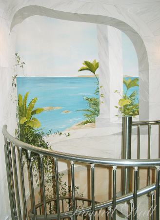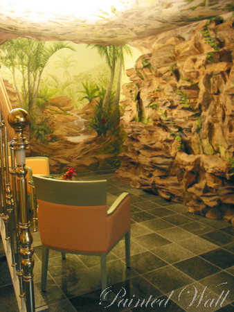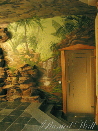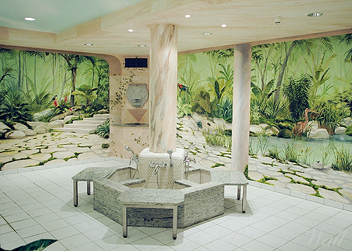 En el hotel ‚Villa Heine’ en Halberstadt efectuamos diferentes trabajos. La gran piscina del hotel se decoró con murales en técnica Trompe l oil, igual que las zonas de relajación situadas a sus lados. En el piso bajo en las saunas del hotel creamos el jardin del Edén en pintura, un paisaje humedo y calido lleno de plantas y animales exoticos.