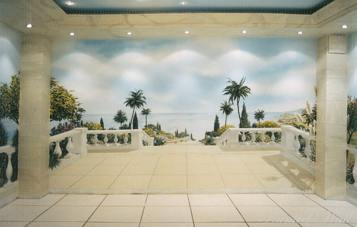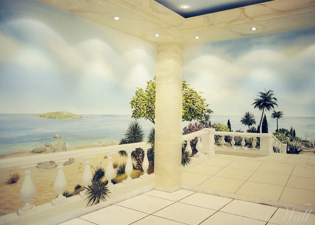 Las salas de este centro de wellness privado se han ampliado en sus espacios gracias al muralismo mediterraneo.